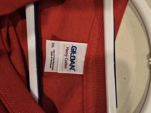 Gildan brand long sleeve shirt in size 3XL, featuring a graphic print of Sriracha hot chili sauce. Made of cotton material in a vibrant red color, this shirt is machine washable for easy care. With a crew neckline and regular fit, it is suitable for both men and women who appreciate spicy style. Perfect for those who enjoy bold and unique clothing items with a Thai-inspired theme. The shirt is part of the Gildan Ultra Cotton product line, known for its quality and durability.