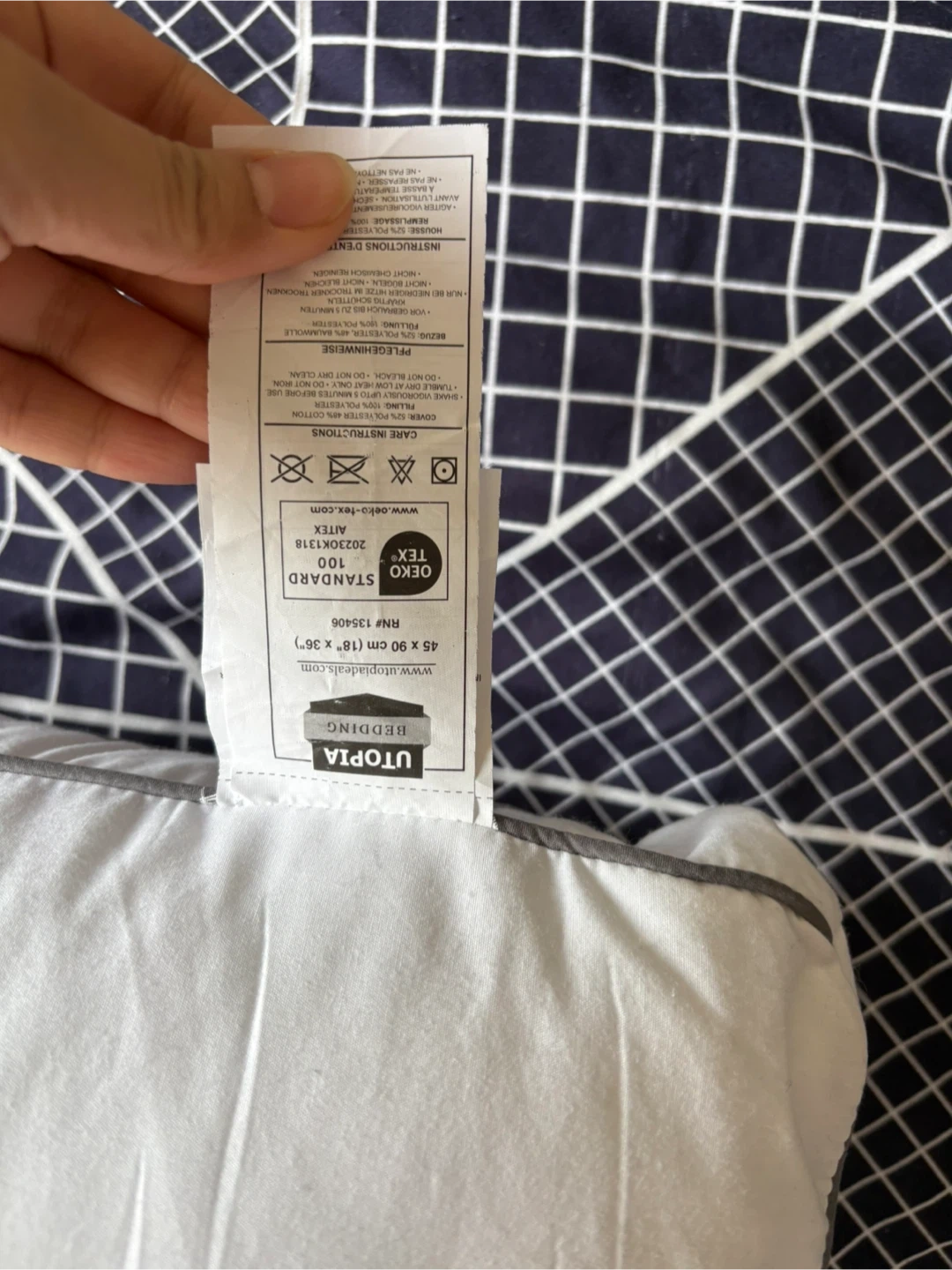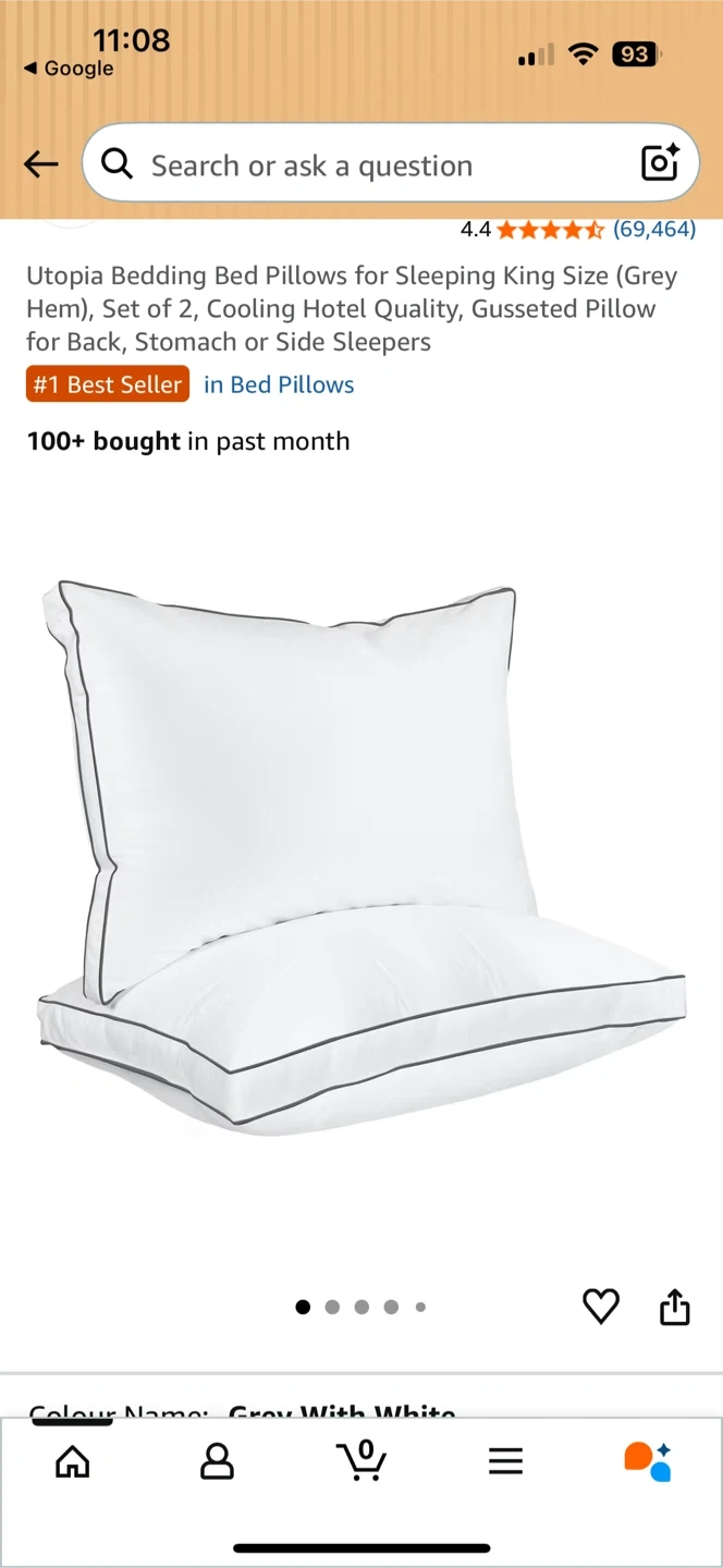 Selling a set of two King size Utopia Bedding pillows. They're white with a grey hem and feature a cooling hotel quality design. Filling is 100% polyester, cover is 100% polyester.
