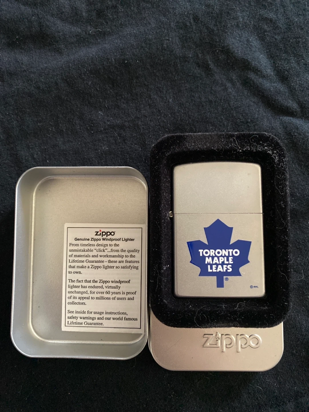 Toronto Maple Leafs logo zippo lighter new in the case great for collectors or everyday use comes with a nice case never used.