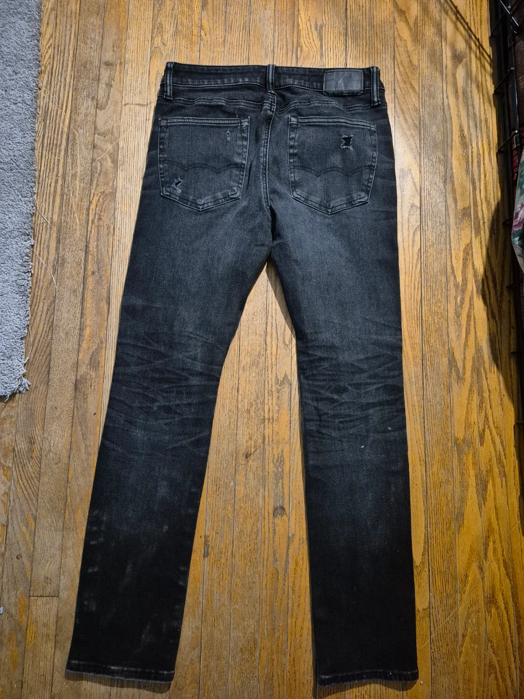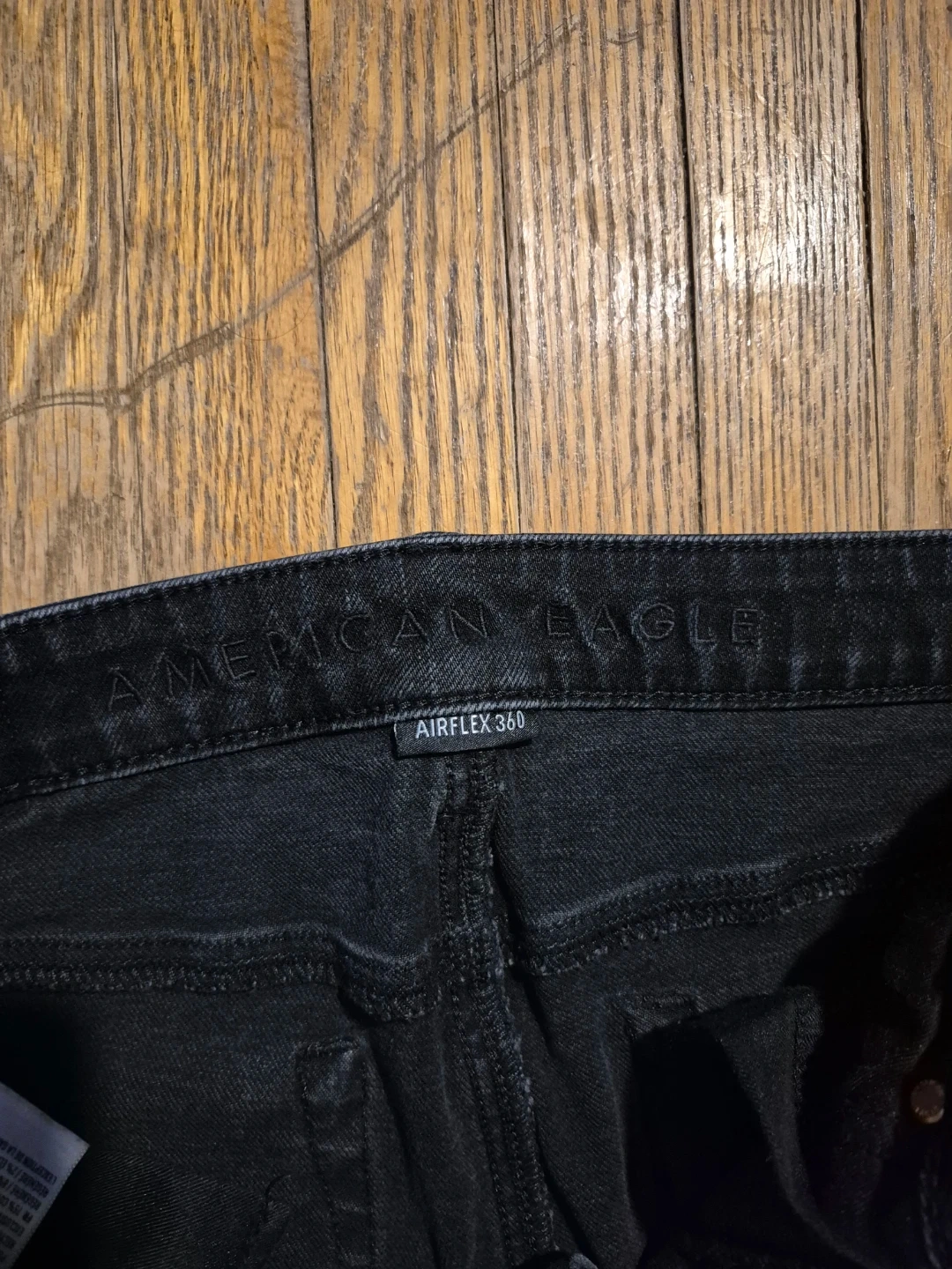 These American Eagle Airflex 360 jeans are a distressed black colour. They're a slim fit with a comfortable stretch. Perfect for everyday wear!