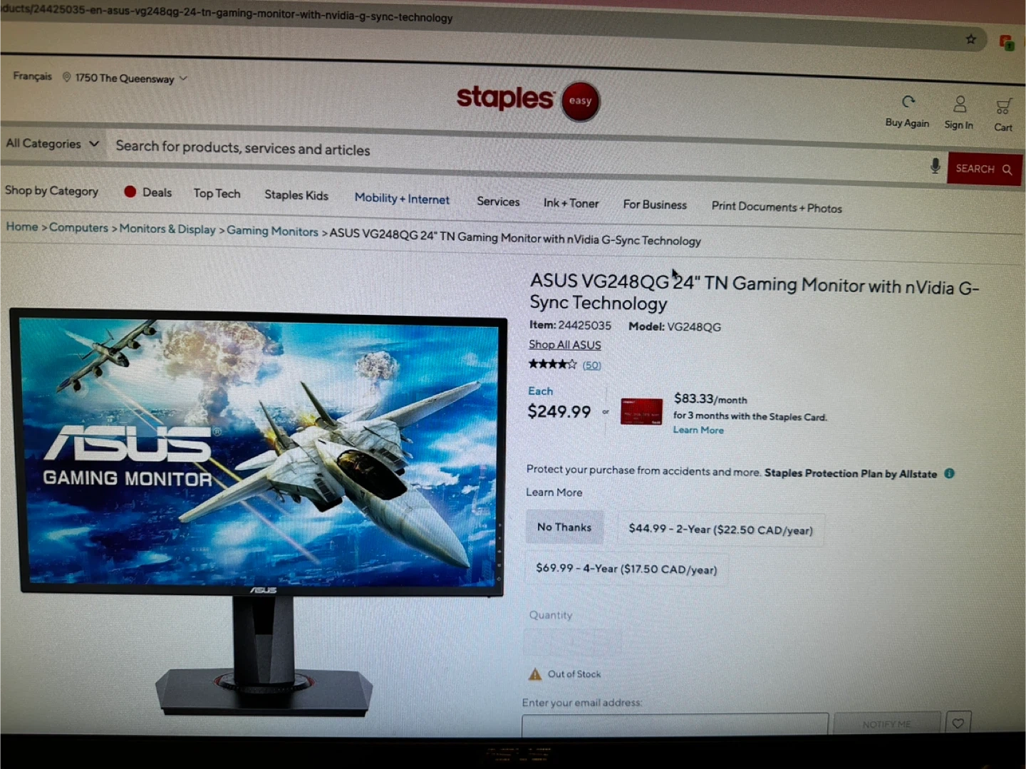 ASUS VG248QG 24" Full HD 1920 x 1080 0.5ms 165Hz(overclockable) Gaming Monitor, G-SYNC Compatible, Adaptive-Sync, ASUS Eye Care with Ultra Low-blue Light & Flicker-Free Technology