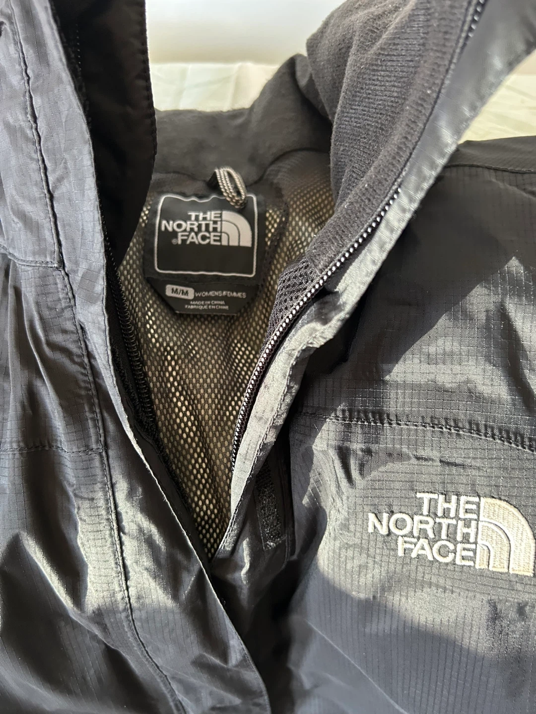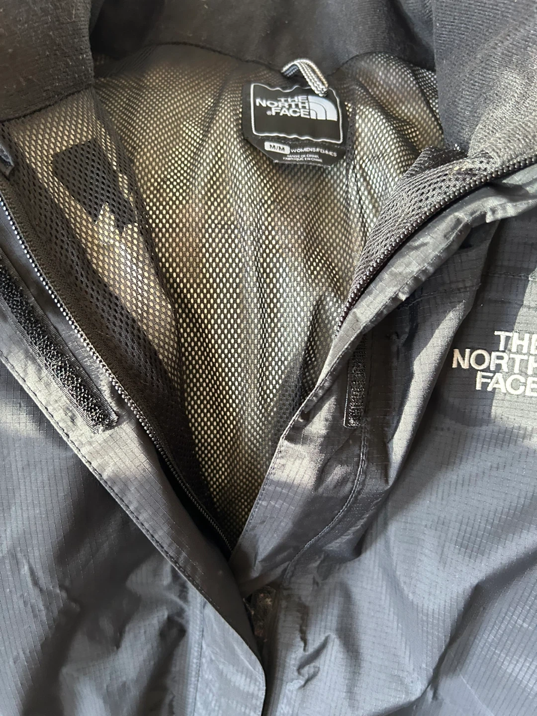 This is a black The North Face women's jacket. It's a size M/M. It has a mesh lining and zippered pockets.