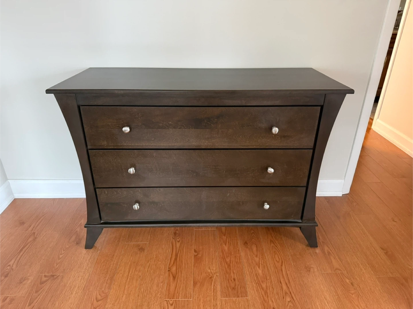 It features three spacious drawers, perfect for organizing your clothes or other items. It's in good condition and ready for pick-up.