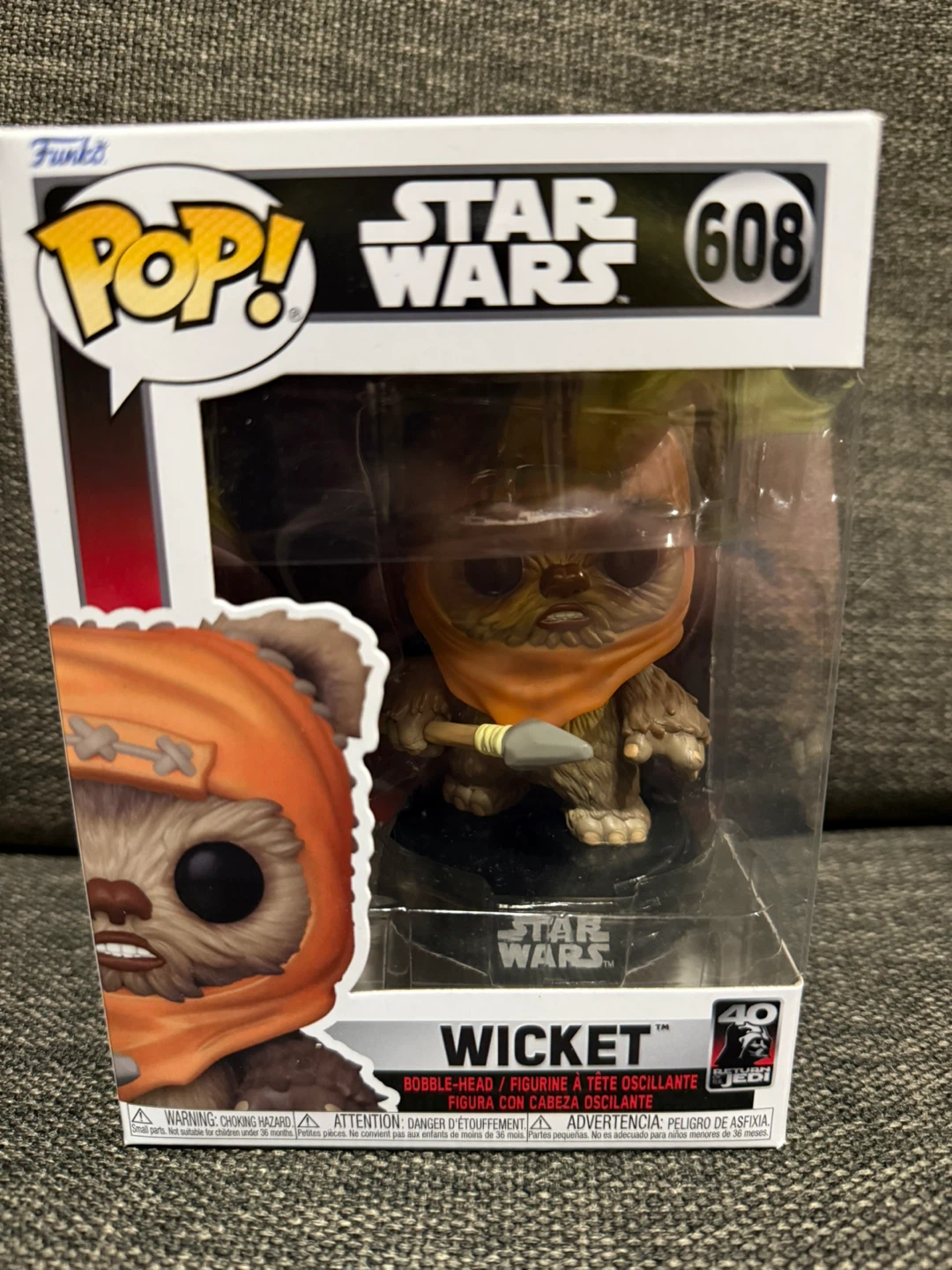 Selling a brand new Funko Pop! figure of Wicket from Star Wars. This is figure #608 in the series. It's a bobble-head figure and comes in its original box