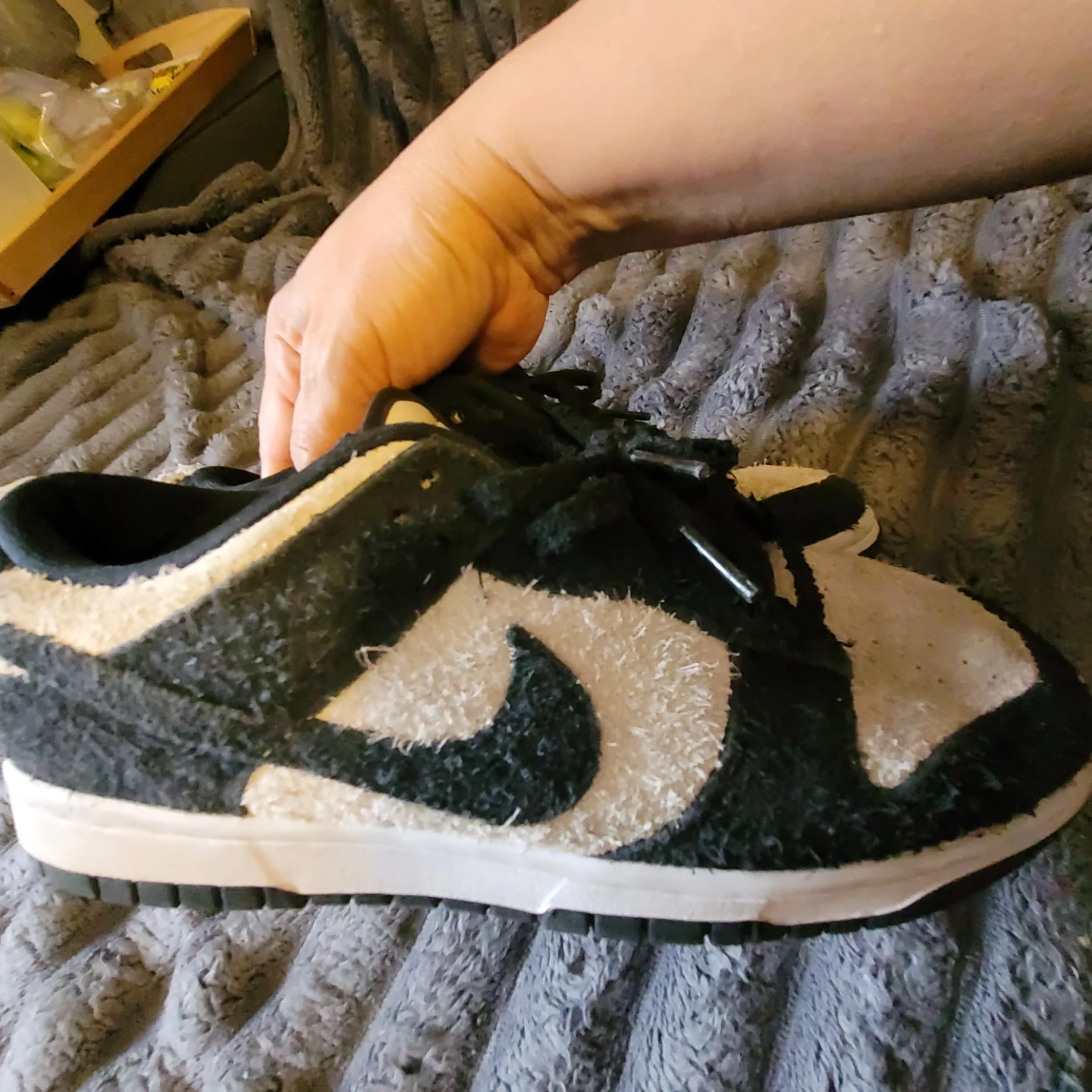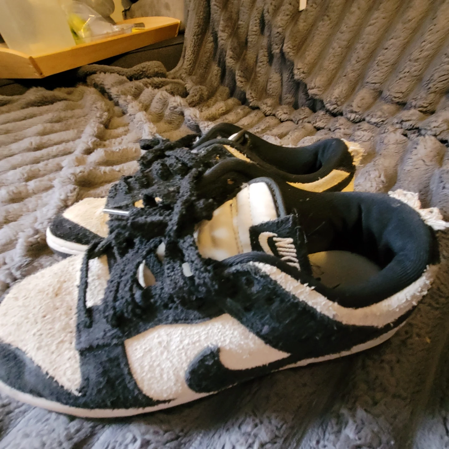 Nike Dunk Low shoes in black and white. Size 7.5 US, 6.5 UK, 40.5 EUR. Made in Vietnam. These sneakers offer a classic look with a comfortable fit. Ok condition