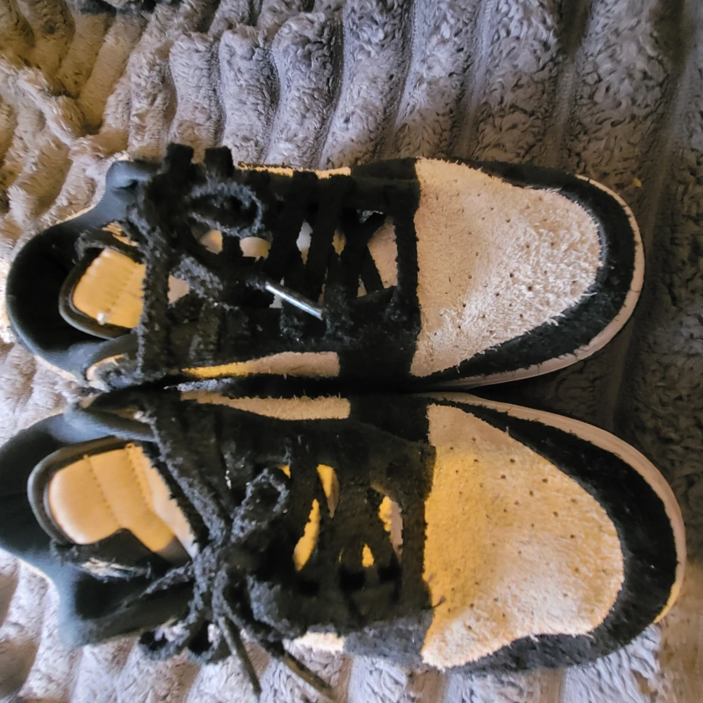 Nike Dunk Low shoes in black and white. Size 7.5 US, 6.5 UK, 40.5 EUR. Made in Vietnam. These sneakers offer a classic look with a comfortable fit. Ok condition