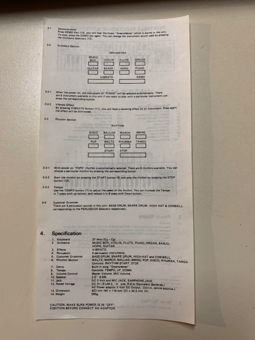 Vintage Hing Hon EK-001 Portable Electronic Keyboard