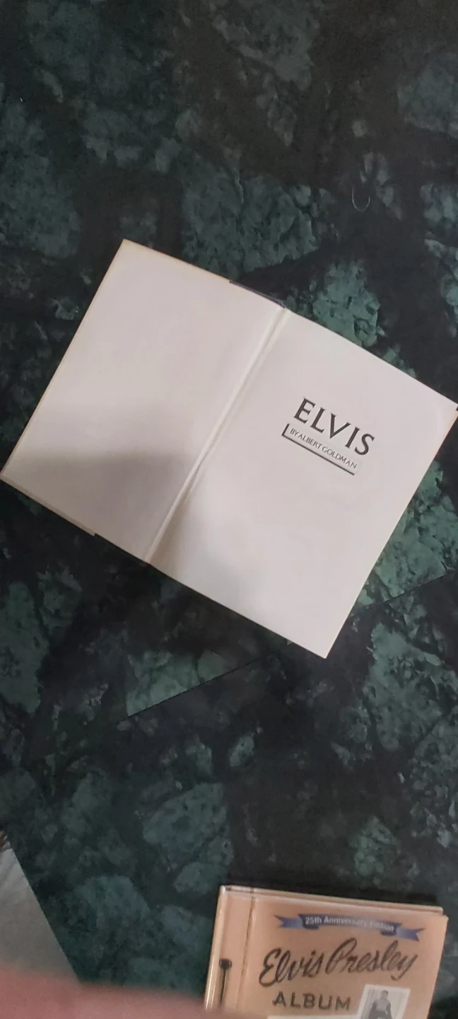This is a collection of books about Elvis Presley. It includes 'Elvis by Albert Goldman', 'Elvis Presley Album' (25th Anniversary Edition), 'Elvis: The Complete and Definitive Reference Book', and 'The Elvis Encyclopedia'. These books cover his life, career, and music extensively. Hard cover. Great condition minus Elvis by Albert Goodman some staining and wear
