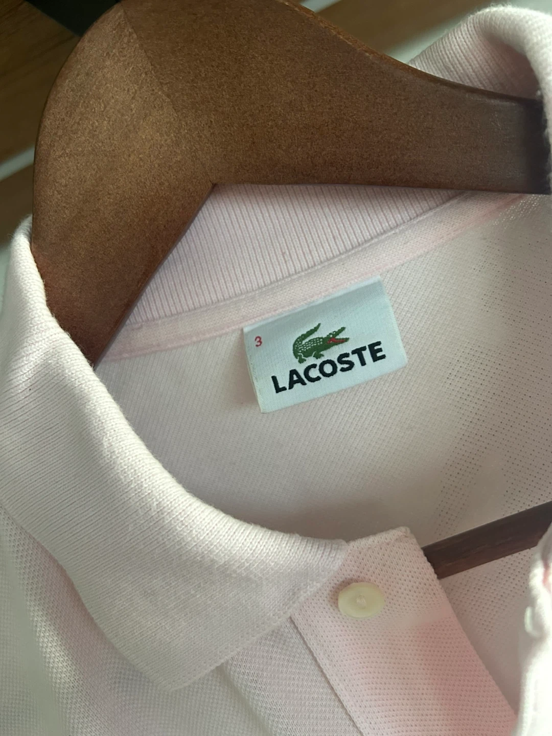 Selling a Lacoste polo shirt in a lovely pink colour! The size is 3 thats M. It's in great condition and ready for a new wardrobe addition