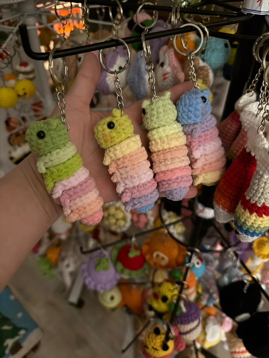 These adorable crochet worm keychains are handmade with love! They come in a variety of cute colours. Perfect for adding a touch of whimsy to your keys or backpack