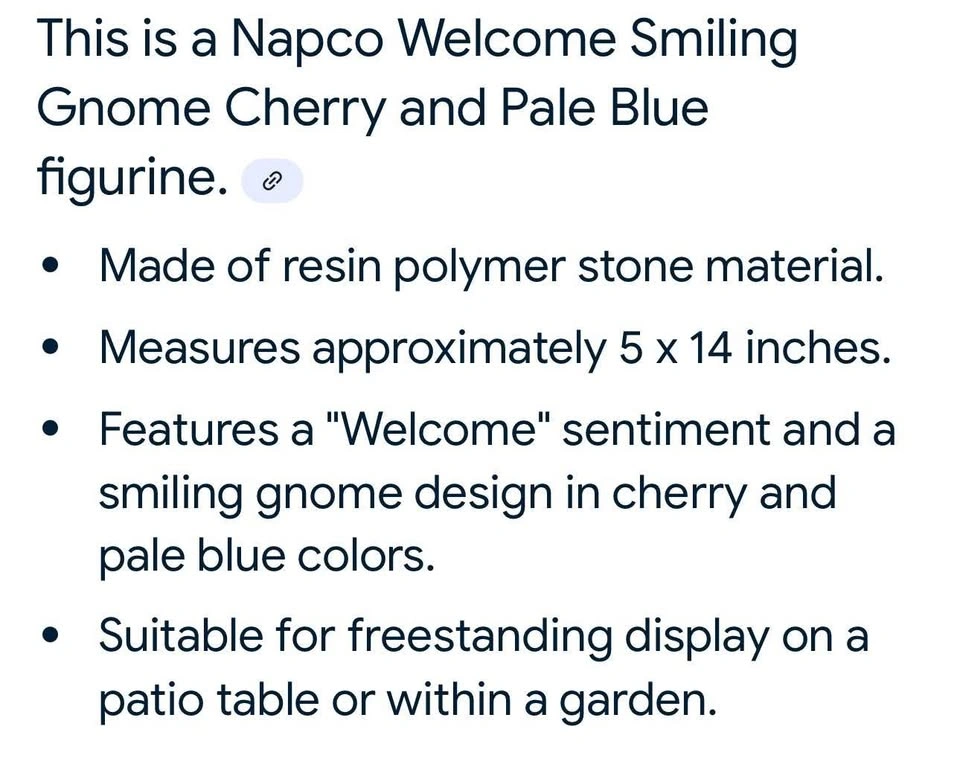 Gnome welcome garden sculpture -new 5”x 14” resin