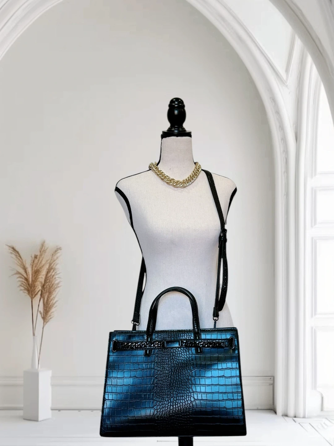 Black Croc-Embossed Tote Bag