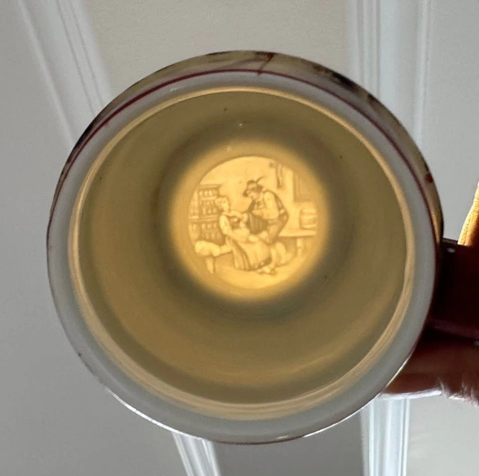 Antique German Lithophane Beer Stein w/ Pewter Lid §11 Mark
