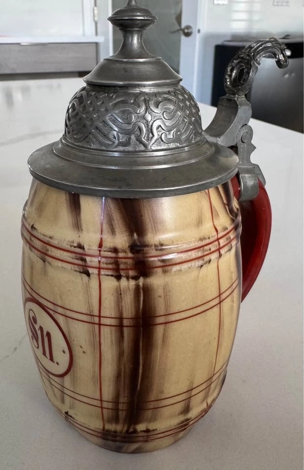 Antique German Lithophane Beer Stein w/ Pewter Lid §11 Mark