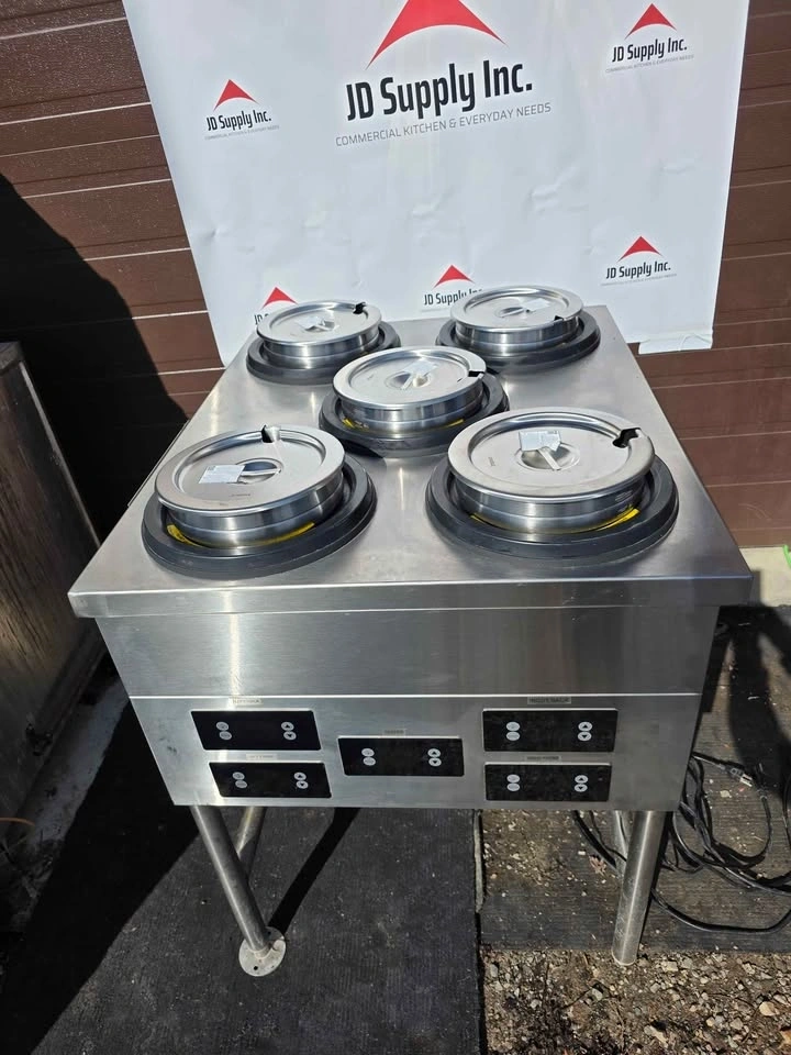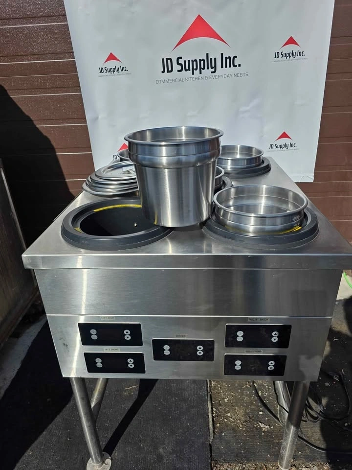 Table is in great condition, comes with 5 brand new inserts with lids. This Table was customer built and is perfect for multiple uses. Each induction warmer is 120v, they all run off single plugs. Pickup in Brantford. Let me know if you're interested!