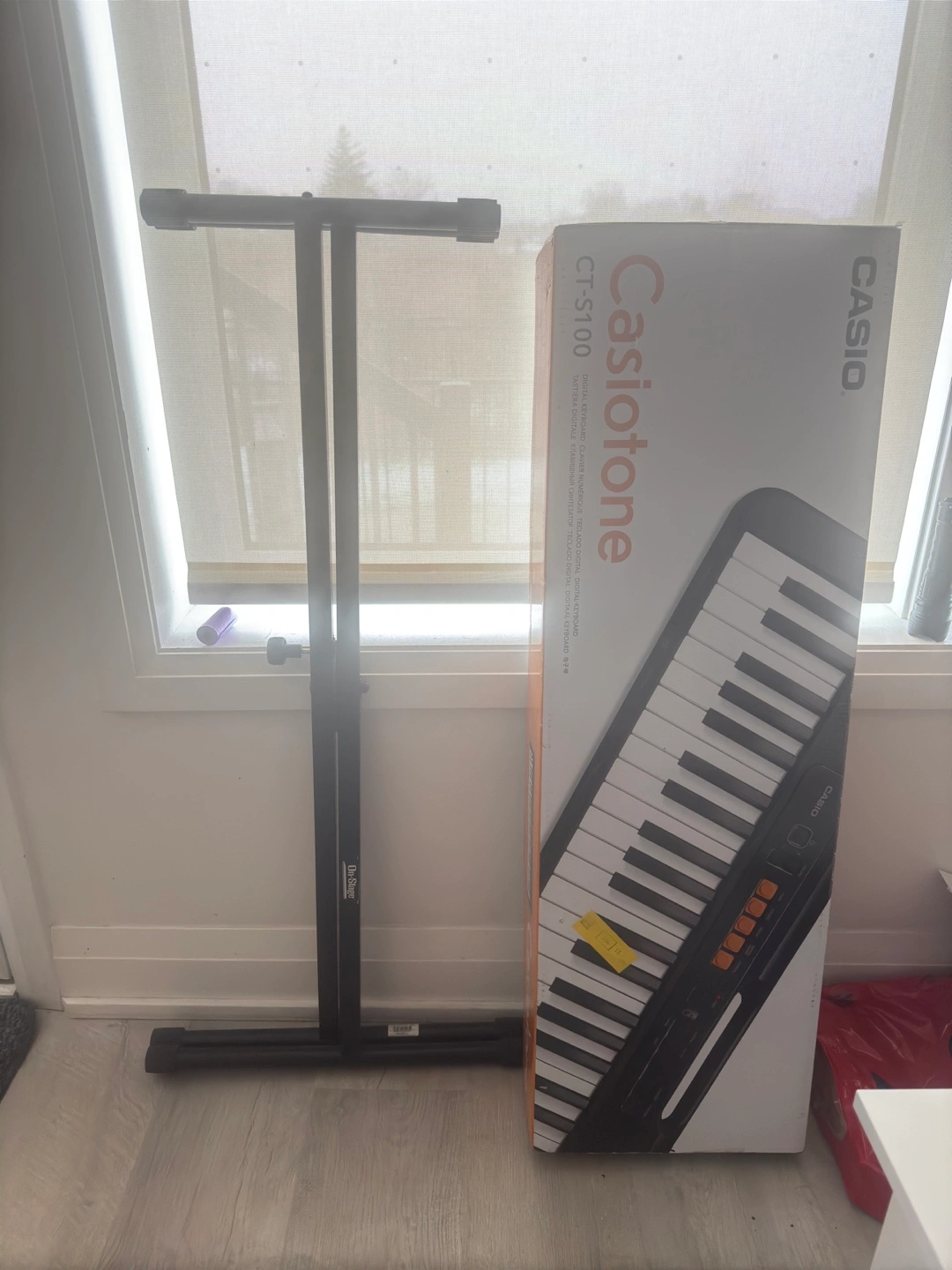 Casio Casiotone CT-S100 keyboard. Includes stand and power adapter. Good condition.