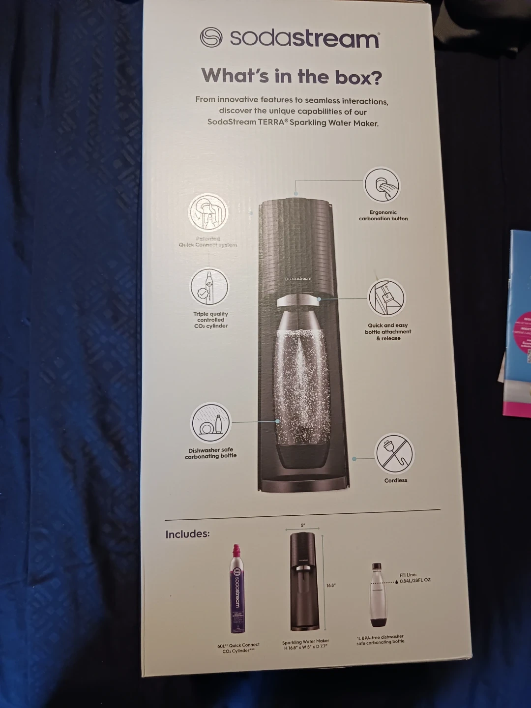 SodaStream Terra sparkling water maker. Only used once to ensured it works. Features quick connect CO2 cylinder system and dishwasher safe bottle. Includes one 60L Quick Connect CO2 cylinder and one 0.5L/28FL OZ BPA-free dishwasher safe bottle. Machine dimensions: 16.5" H x 5" W x 10.7" D. As a bonus, i will also include a drink mix bottle of ginger ale, and a bottle of lime bubly drop, a $ 15 value!