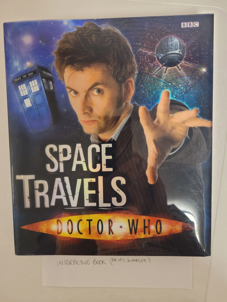Doctor Who books and magazines. Includes: The Visual Dictionary, Space Travels interactive book, The Official Annual 2009, The Inside Story, and Doctor Who Magazine, Fanzines, and some unopened gadgets (may need batteries).