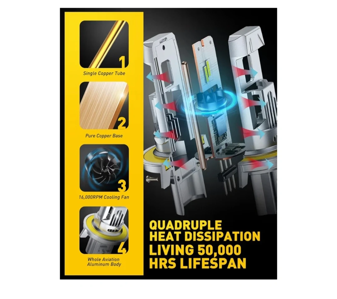 AUXITO H3 9008 led headlight bulbs, 6500K cool white, 40000 Lumen per set, 900% brighter