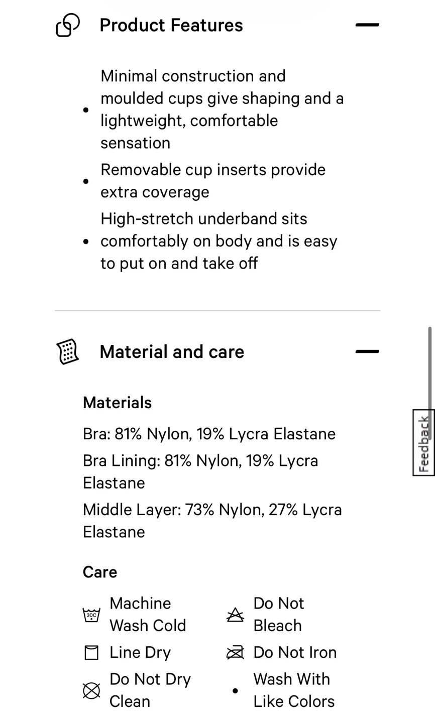 - Minimal construction and moulded cups give shaping and a lightweight, comfortable sensation