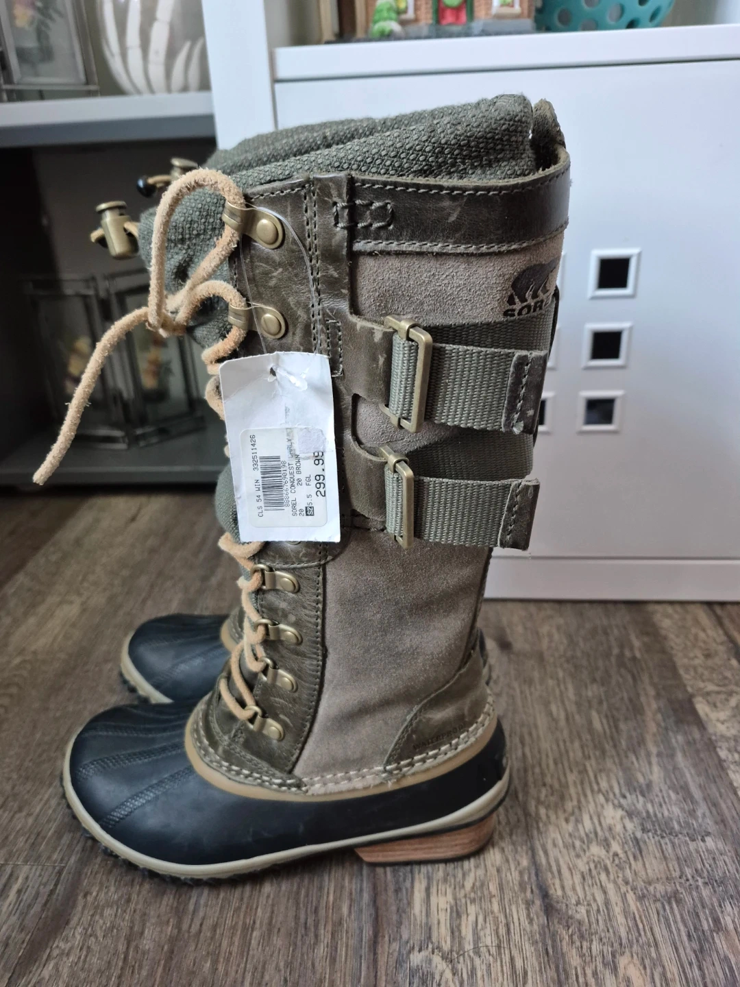 Selling a pair of Sorel Women's Vintage Conquest Carly Boots in size 5 5. They feature a stylish design with a lace-up front and buckle details. These boots are perfect for adding a bit of height while staying comfortable and warm. Boots have been in the closet since bought them, never worn, still have tag on it; it's time to let them go. Asking $30. Pick-up location 333 Taralake Way NE.
