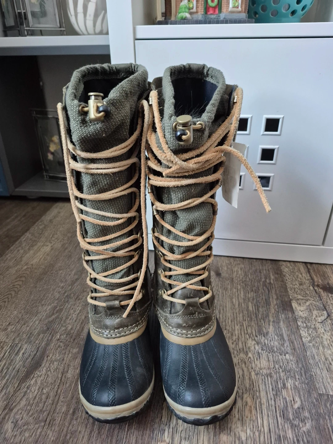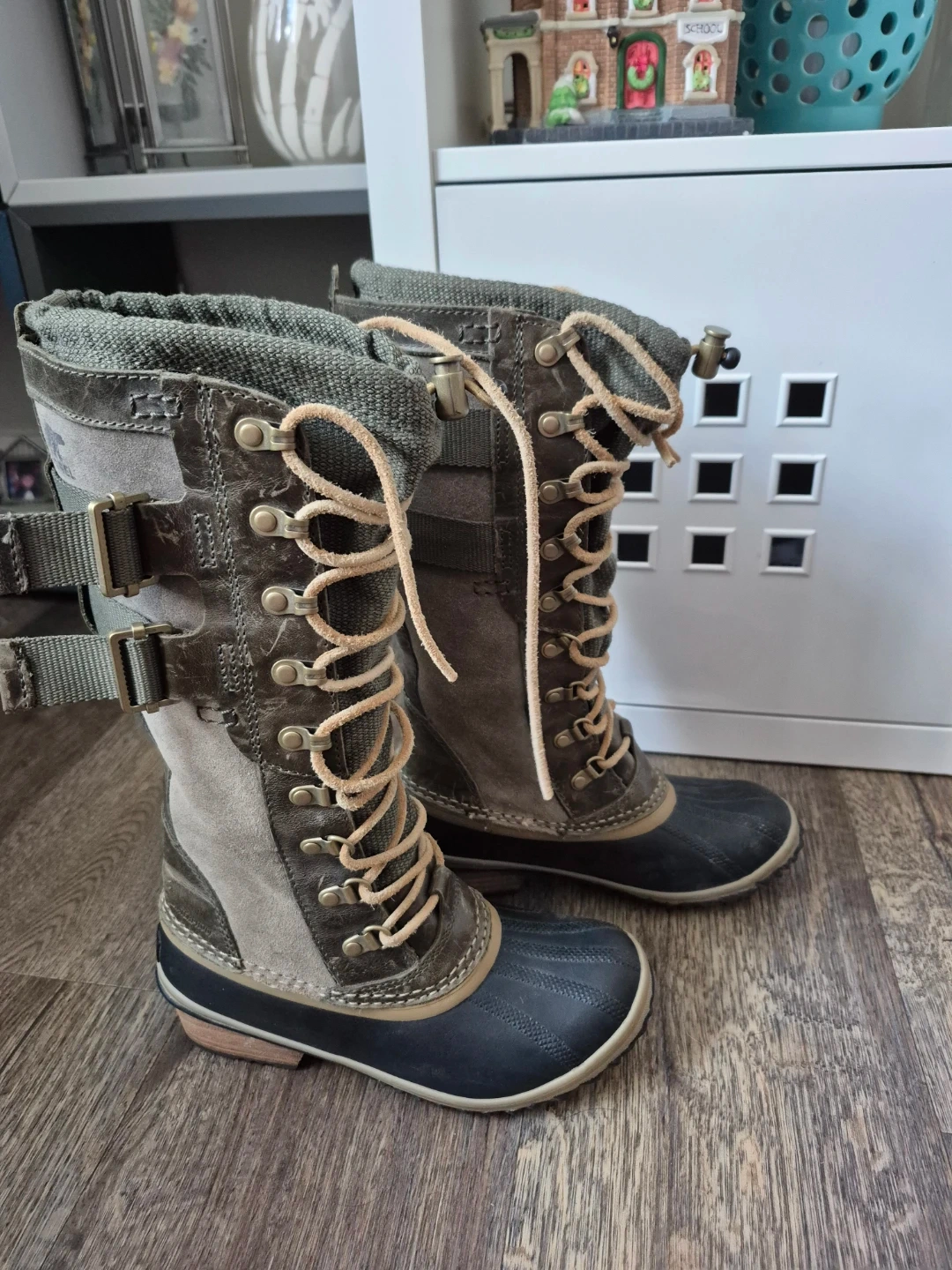 Selling a pair of Sorel Women's Vintage Conquest Carly Boots in size 5 5. They feature a stylish design with a lace-up front and buckle details. These boots are perfect for adding a bit of height while staying comfortable and warm. Boots have been in the closet since bought them, never worn, still have tag on it; it's time to let them go. Asking $30. Pick-up location 333 Taralake Way NE.