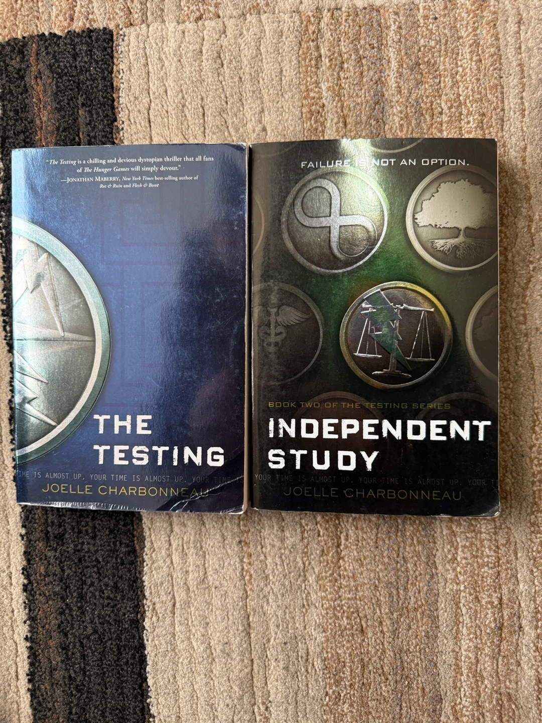 Selling the first two books in The Testing series by Joelle Charbonneau: The Testing and Independent Study! They're great for fans of dystopian thrillers
