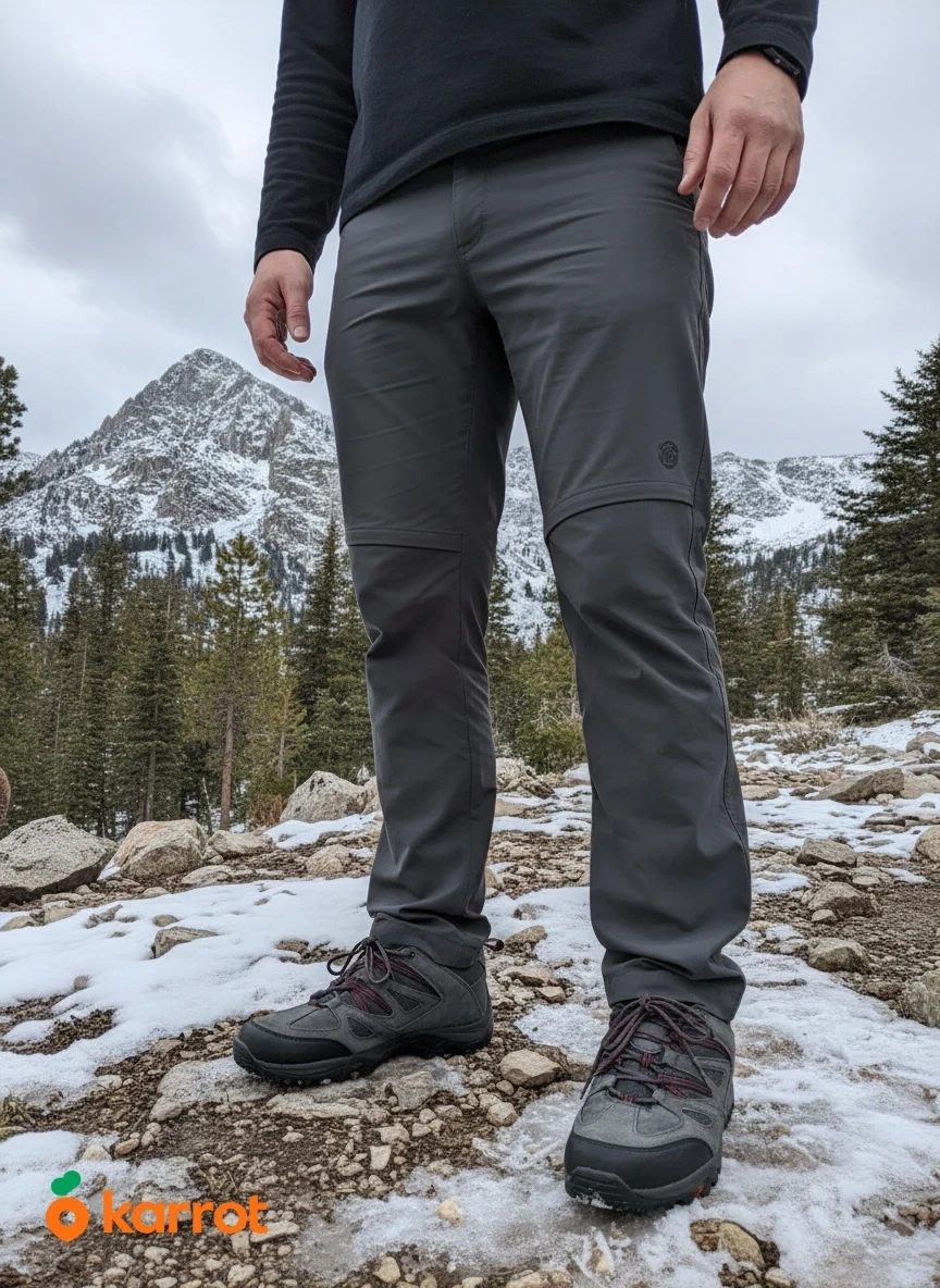 These grey mountain warehouse outdoor III shoes have red accents and laces. They feature a durable rubber sole for good grip. Suede and mesh upper construction.great for hiking or winters.I used it may be twice not more and have been sitting idle, since it's taking space and I am using my other winter shoes so considering selling it.Size US 11