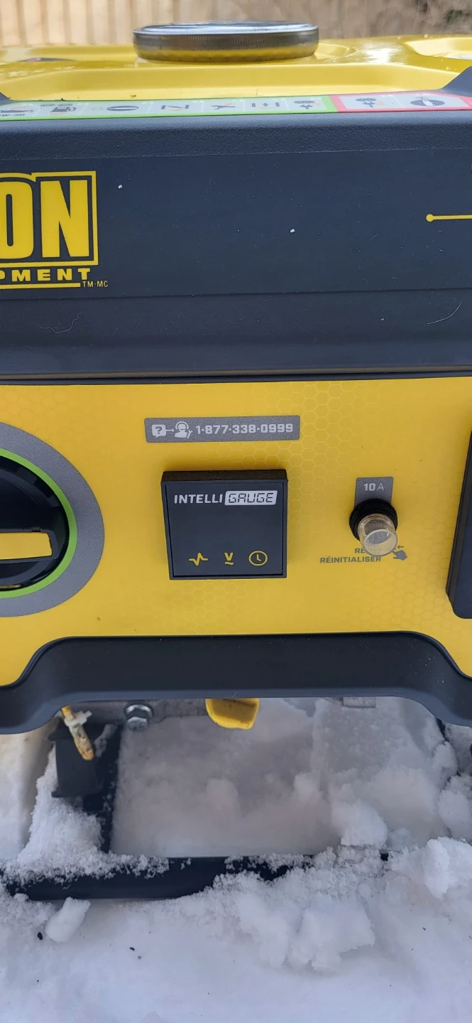 This is a Champion 1500 watt portable generator. It's yellow and black with a metal frame. Rated for 1200 running watts. Only 5 hours of run time.