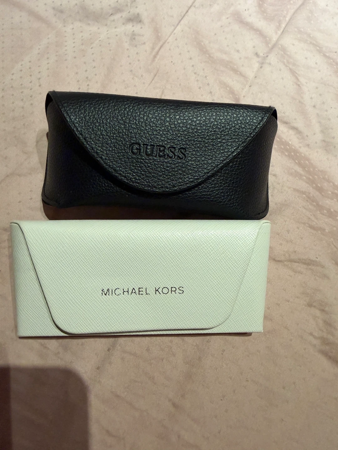 Selling two stylish glasses cases, one from Michael Kors and another from Guess. Both are hard shell to protect your eyewear. They're in great condition!