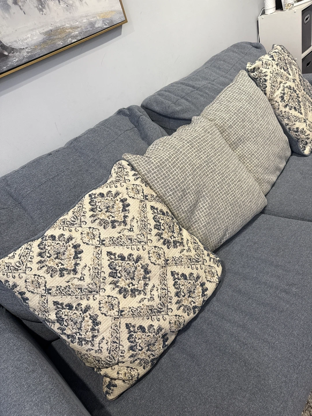 Selling a comfy couch and loveseat set! The set is in good condition and features a neutral blue color that would match any living room. Perfect for lounging and relaxing after a long day