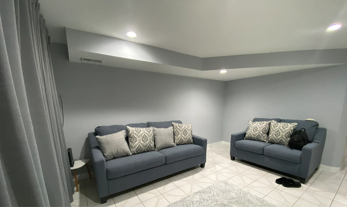 Selling a comfy couch and loveseat set! The set is in good condition and features a neutral blue color that would match any living room. Perfect for lounging and relaxing after a long day