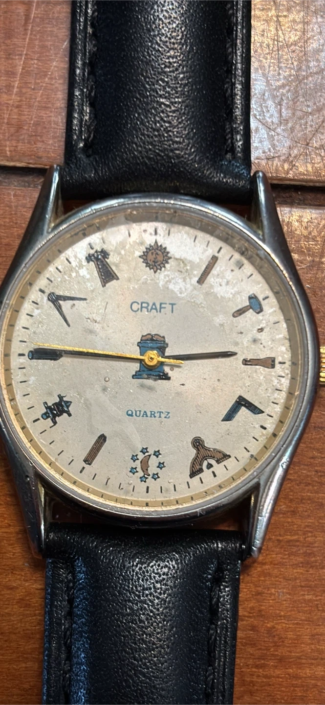 Buy & SellMasonic vintage watchMasonic vintage watch$175Men Masonic vintage watch CRAFT quartz watch has a new black leather band. The face displays various Masonic symbols . CRAFT QUARTZ". Needs a batteryConditionGoodBrandCraftWHERE TO MEETCheck LocationView MapSELLERverifiedJulesSunderland650 reviews0 chats·0 favorites·1 viewsSEND CHAT TO SELLERHi Jules! I’m interested in your listing.Hi Jules! I’m interested in your listing.Get the Karrot app to chatSign In to chat