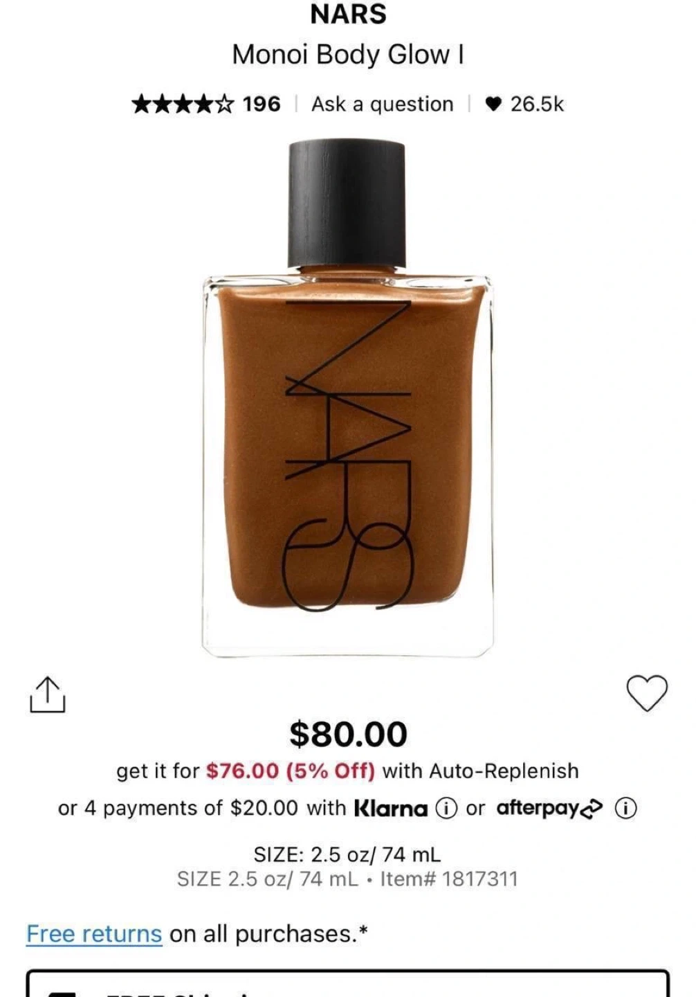 NARS Monoi Body Glow I.Beautiful bronze shimmer. Perfect for adding a touch of radiance.