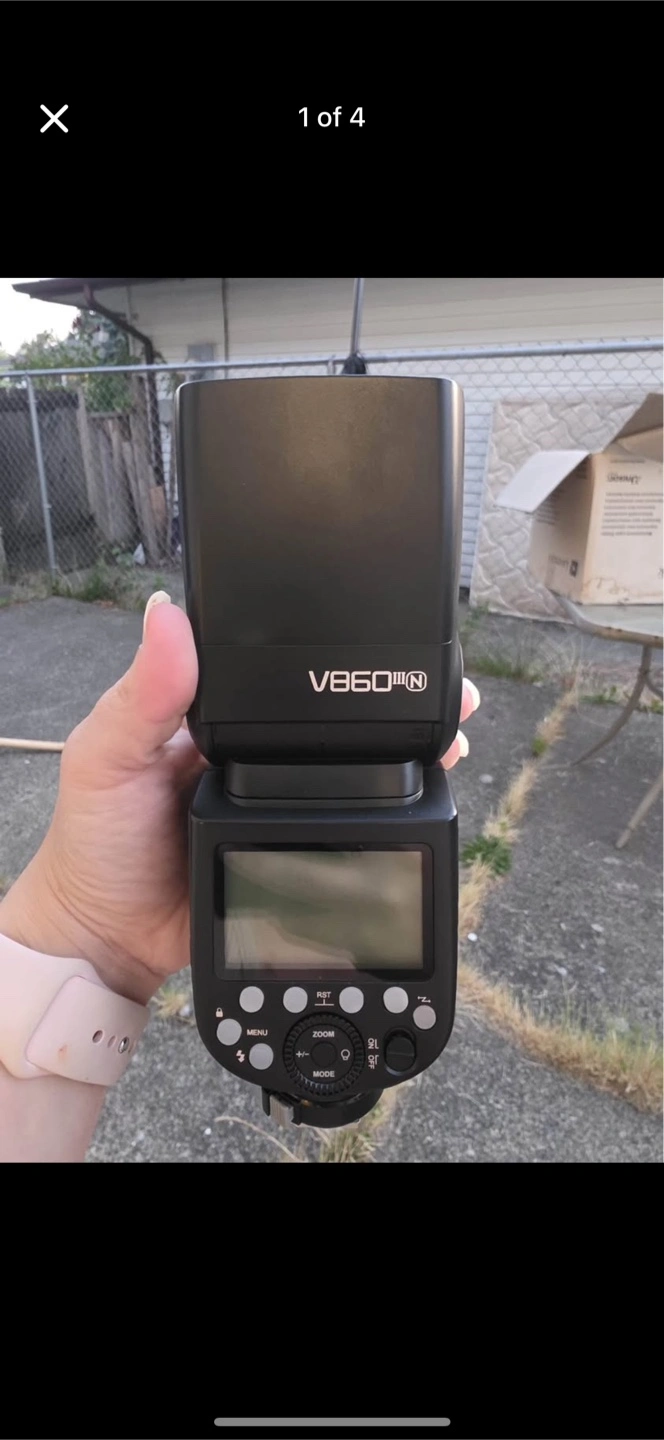 10Selling a Godox V860II-N speedlight flash, compatible with Nikon cameras. It comes with its original case for safe storage and transport. Perfect for photographers looking for a reliable flash unit! Selling because I am switching to Sony. Pick up only!