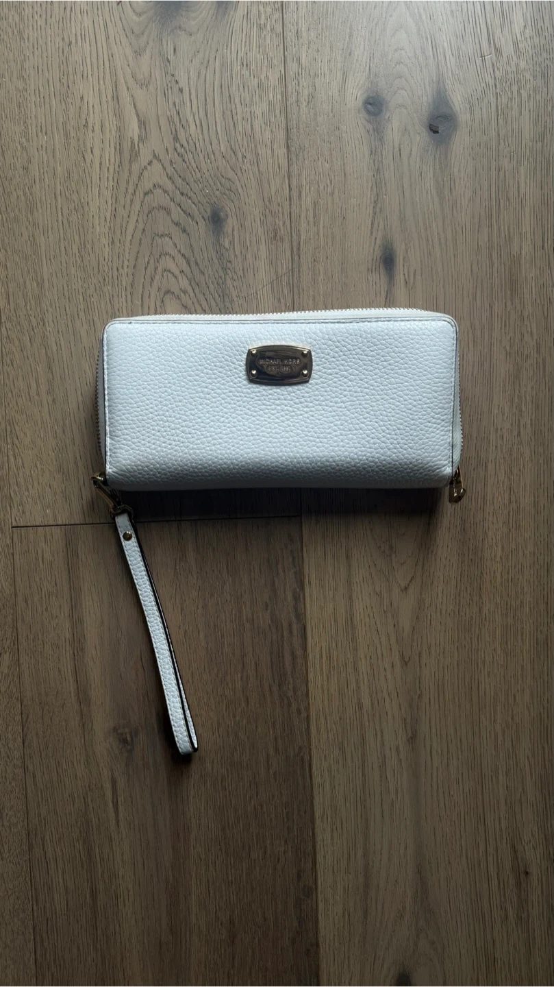Selling a 100% authentic Michael Kors zip-around continental wallet in white pebbled leather with gold-tone hardware. This is the perfect "grab and go" piece that fits all your essentials.