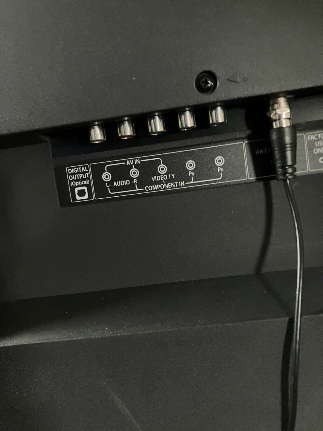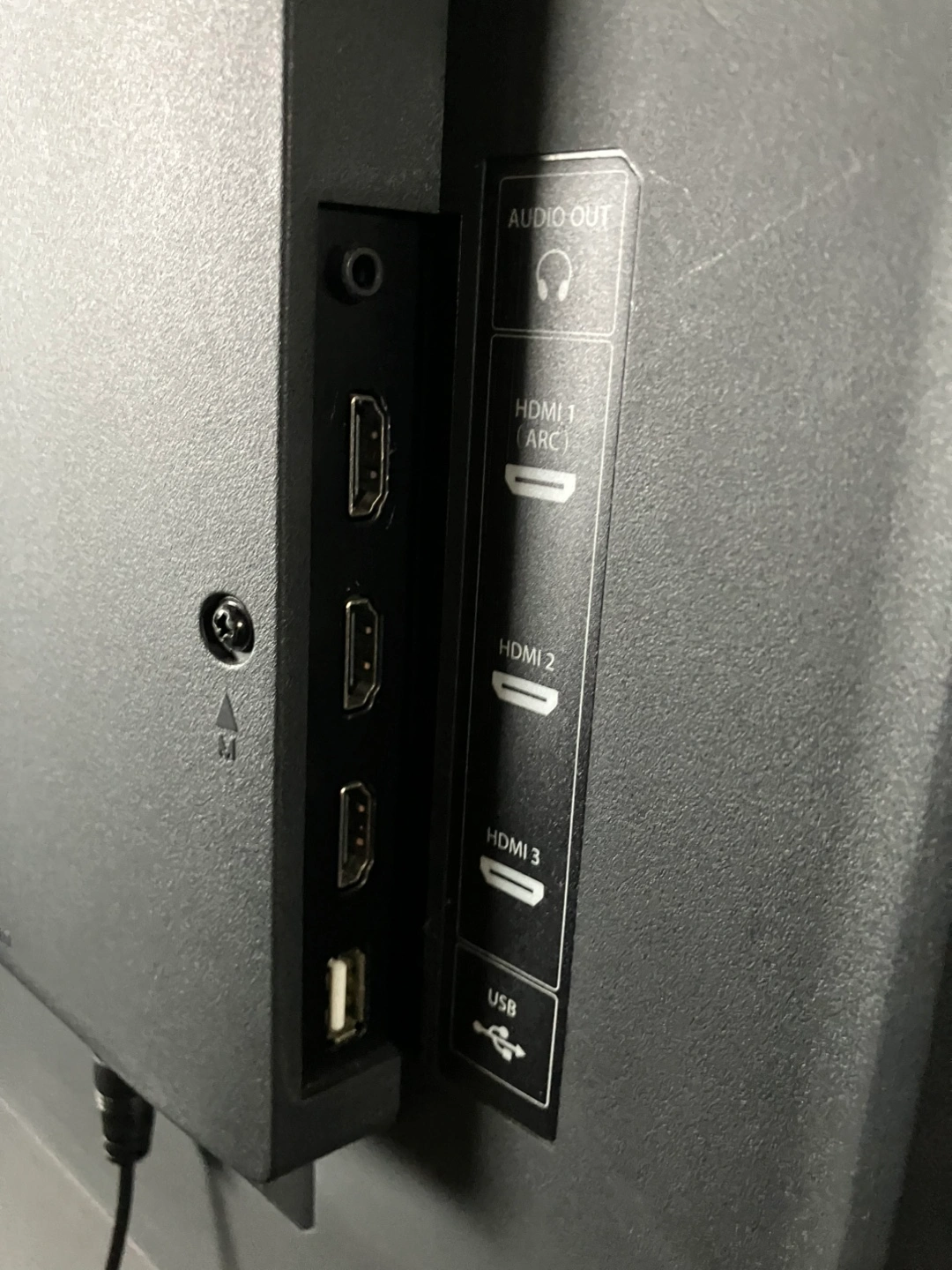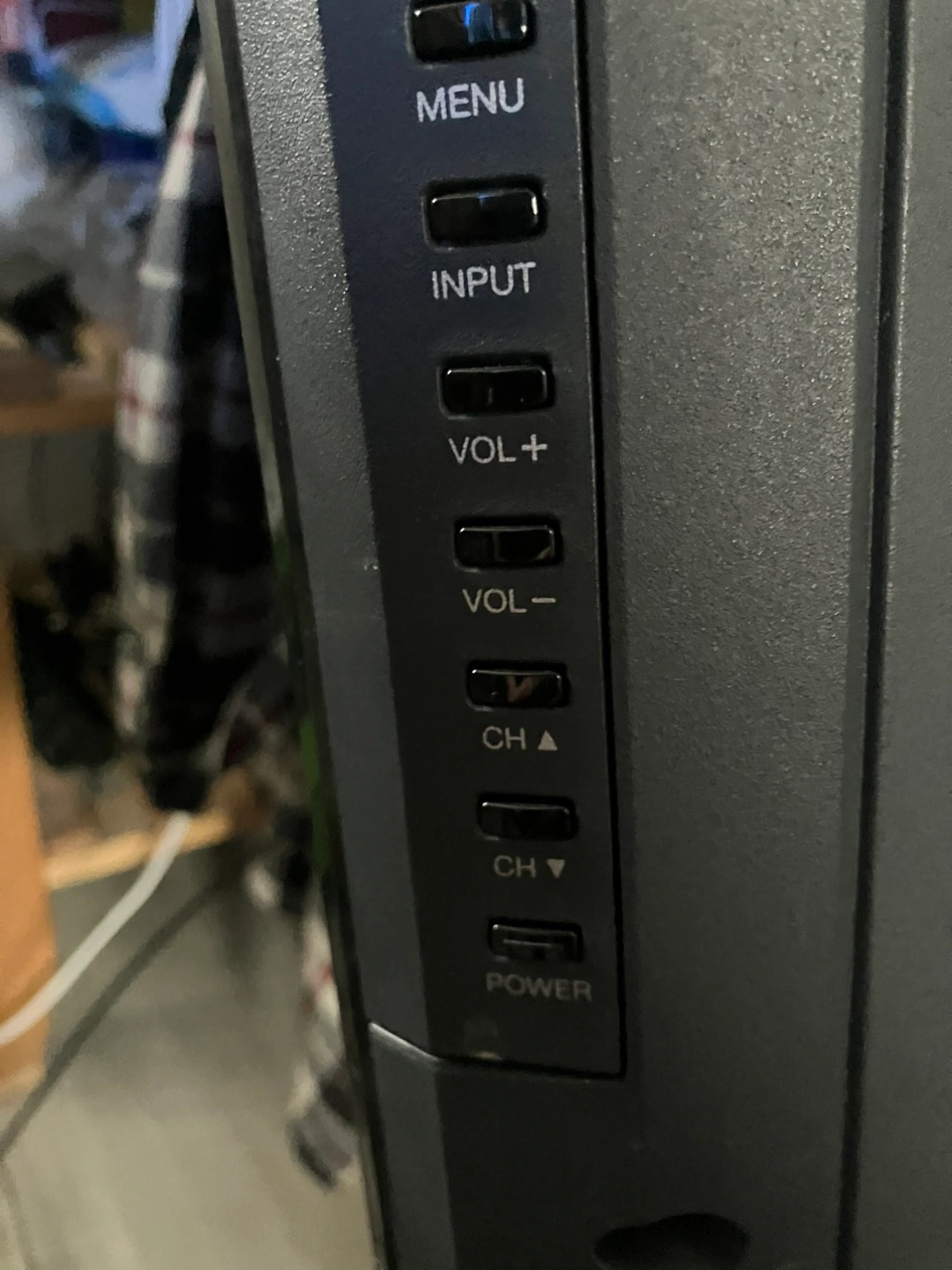 The TV is a 39" LCD model. It features various input ports, and function buttons on the side. HD DMI, USB . Consider snuggling up on the couch and enjoying a movie night with this TV.