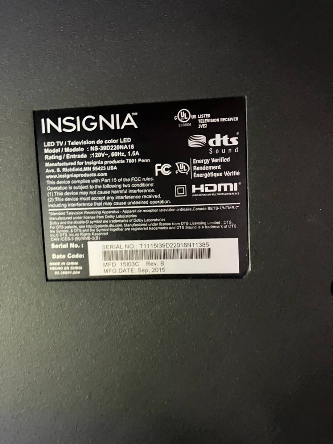 Insignia 39" LCD TV