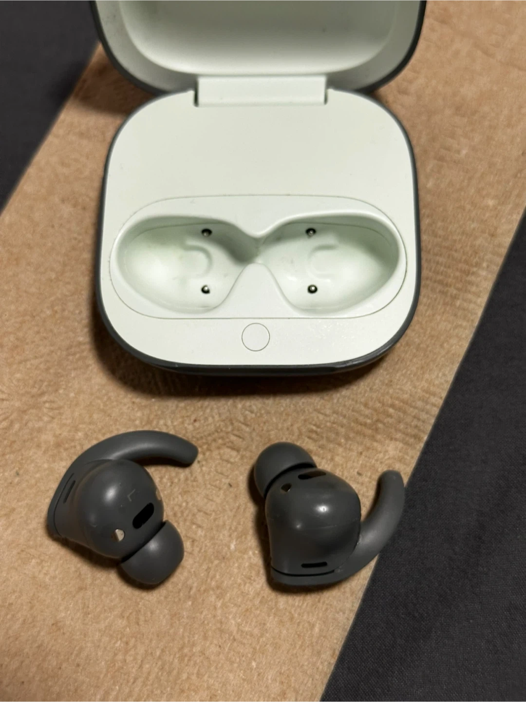 Grey Beats Fit Pro wireless earbuds. Comes with charging case . It's great for workouts!
