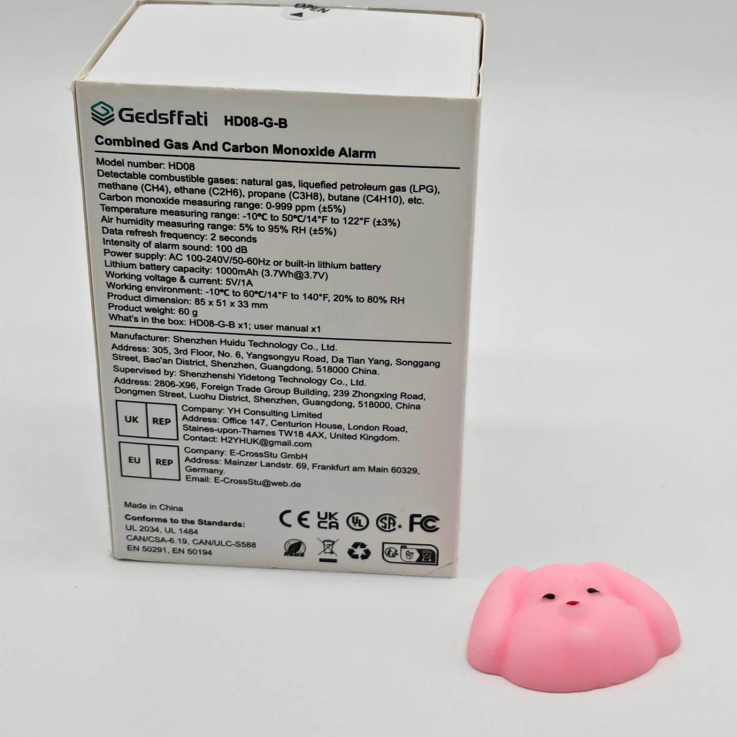 Selling a Gedsffati HD08-G-B combined gas and carbon monoxide alarm! It detects combustible gases like methane, propane, and butane, as well as carbon monoxide. The measuring range for carbon monoxide is 0-999 ppm. It also measures temperature and humidity. Comes with the box and user manual