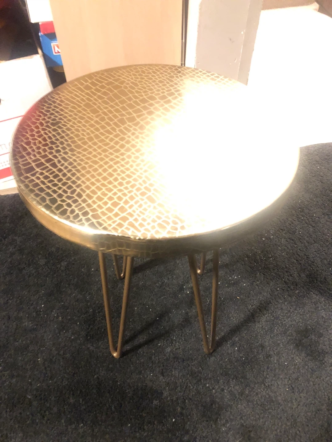 479🌟ONLY $20!!! ✨Beautiful Gold Accent Table . It has a unique textured pattern on top and gold hairpin legs. A stylish addition to any room! Was new this summer from Homesense! Amazing Price, Firm Price Located on the South side ***Check Out My Other Ads for More Fantastic Items, Great Deals and Even FREE Stuff!!!***