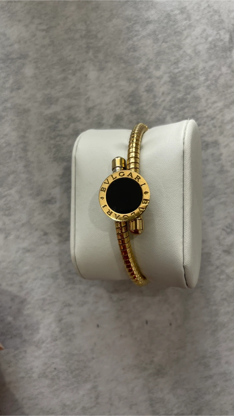 34Selling a beautiful very high quality bracelet and ring set. The set features a gold-tone finish with black accents. It's in great condition and ready for a new home!