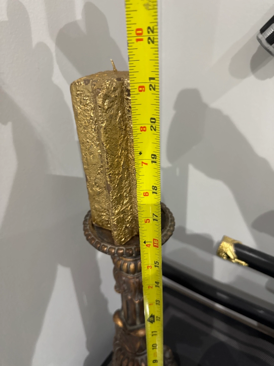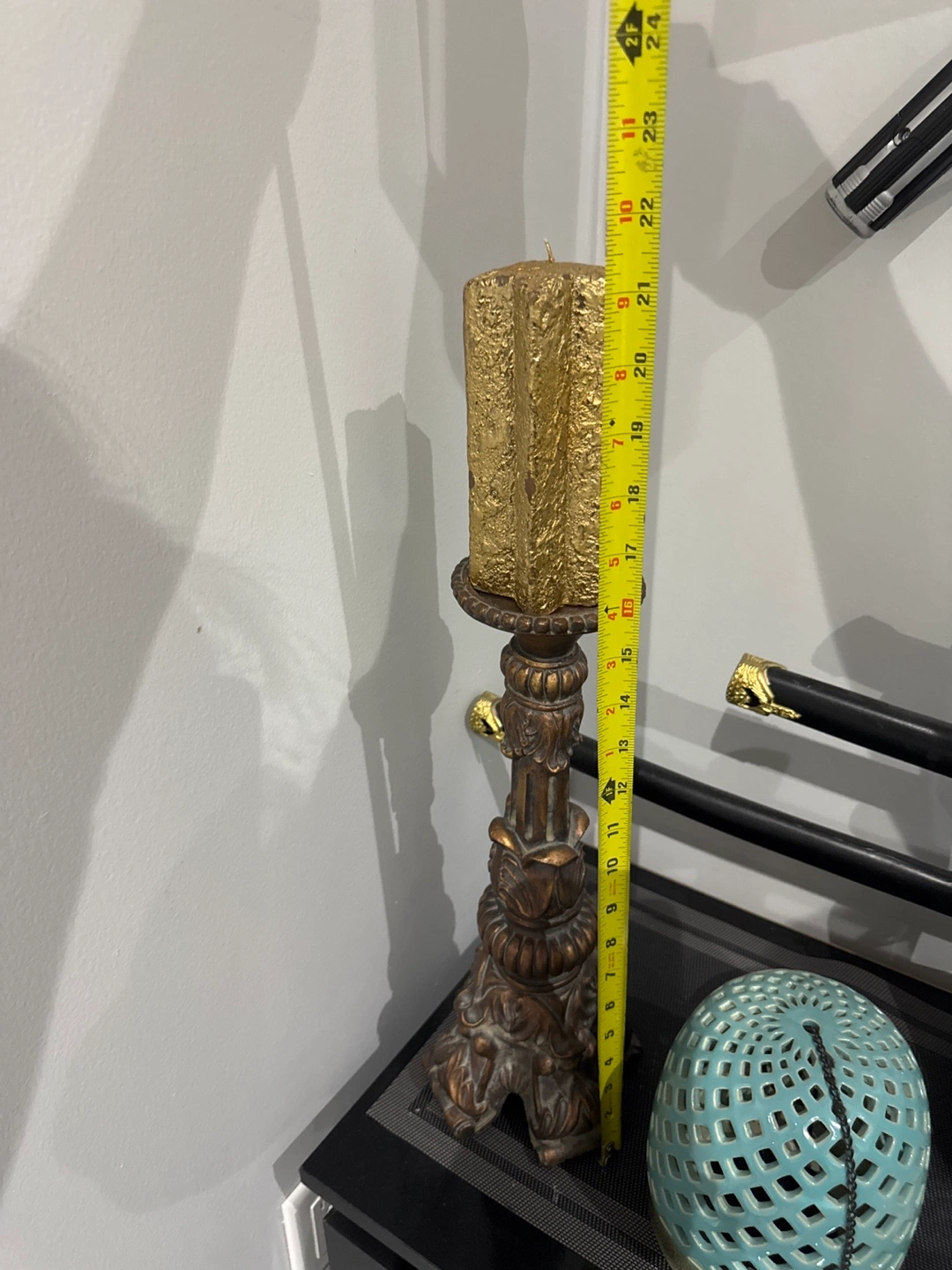 Selling a gold candle holder. It stands approximately 24 inches tall.