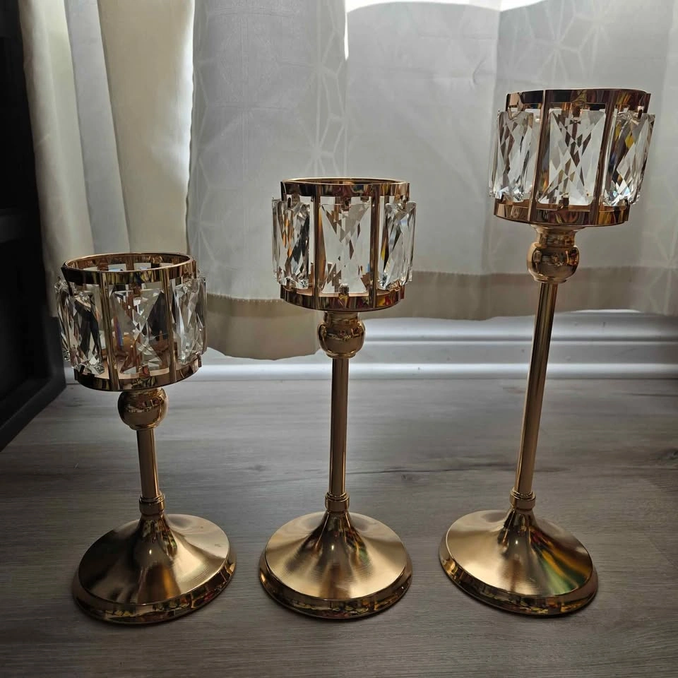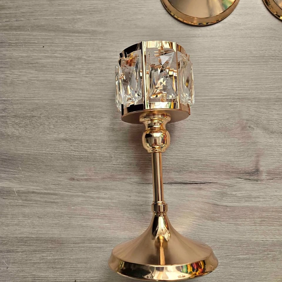 Add a touch of elegance to your home with these beautiful gold candle holders! They feature a crystal design that catches the light beautifully. Perfect for creating a warm and inviting atmosphere in any room. Pick it up Niagara Falls