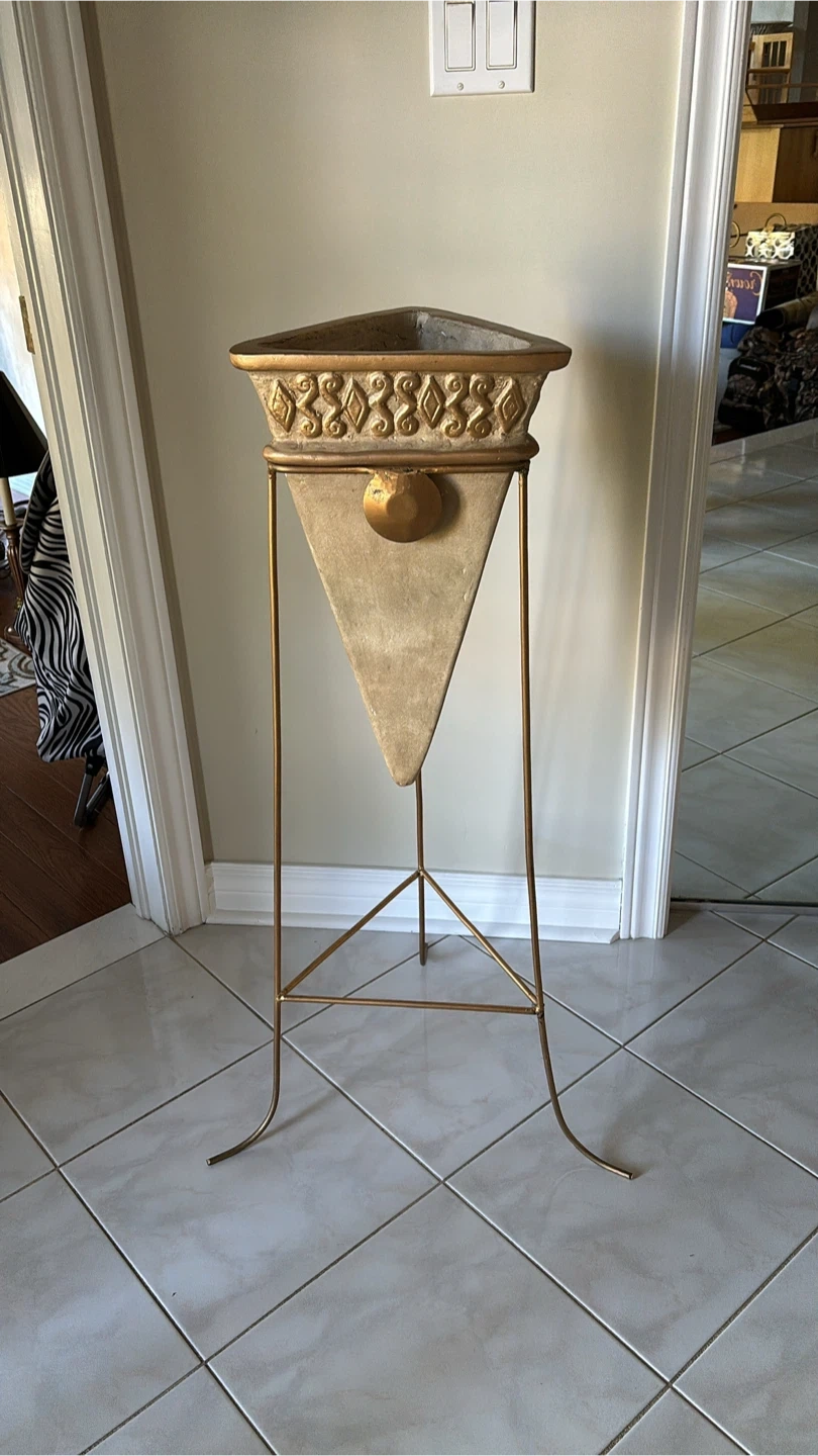10Selling a unique gold decorative planter stand. It's in great condition and would add a touch of elegance to any room