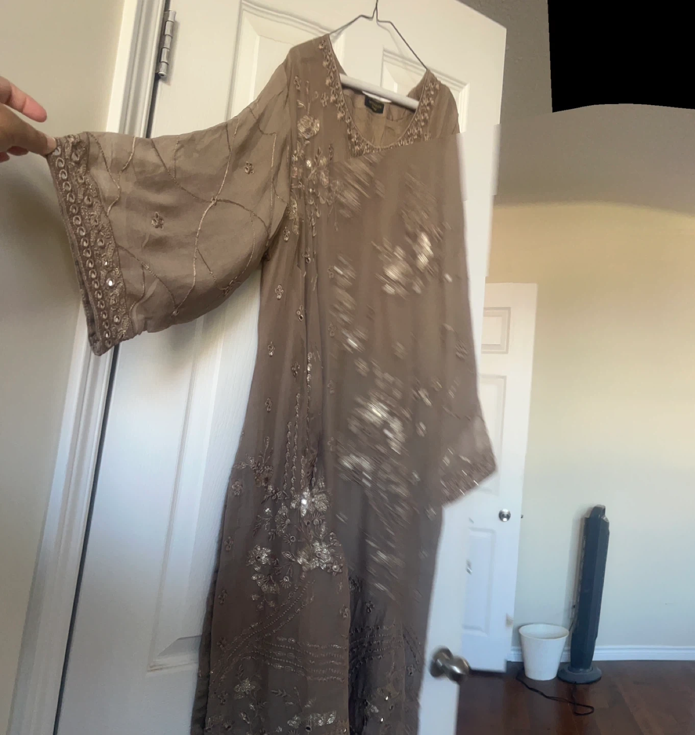 10Beautiful gold salwar kameez suit with intricate embroidery. Perfect for a special occasion or cultural event. In great condition and ready for a new home!