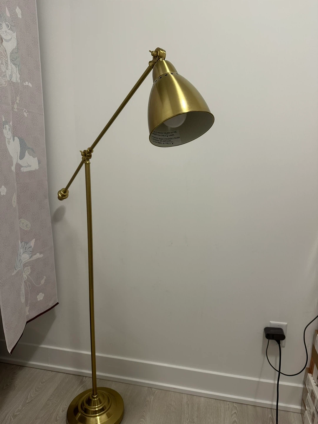 Here's a stylish gold floor lamp that would look great in any room! It uses a max 75W Type A bulb
