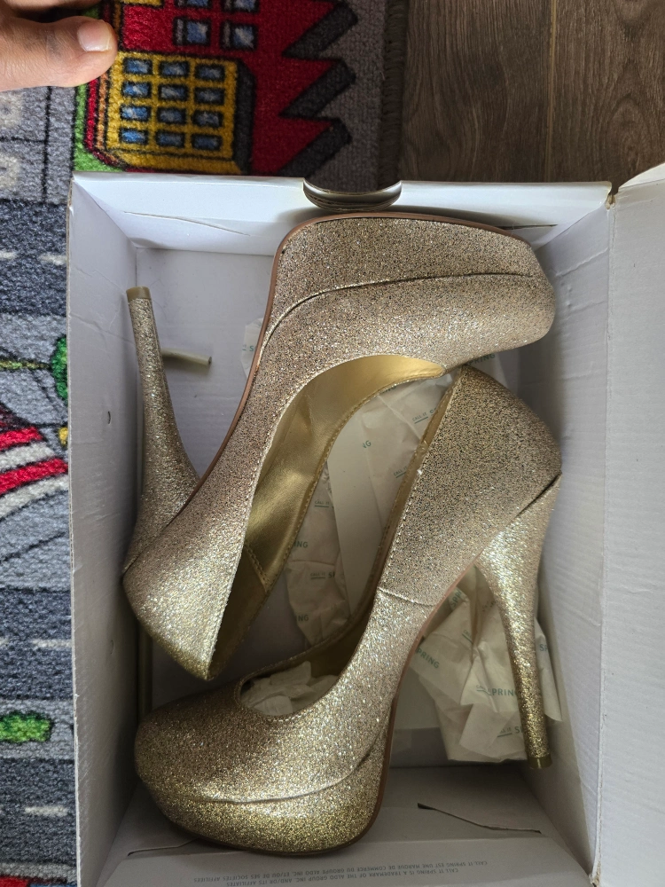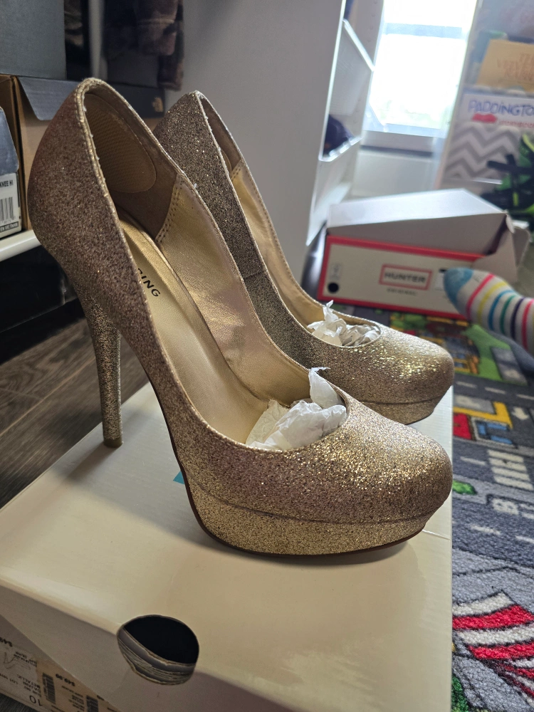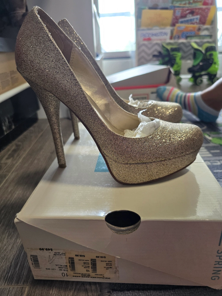 Gorgeous comfortable 10 women's heels with a platform and glitter finish.