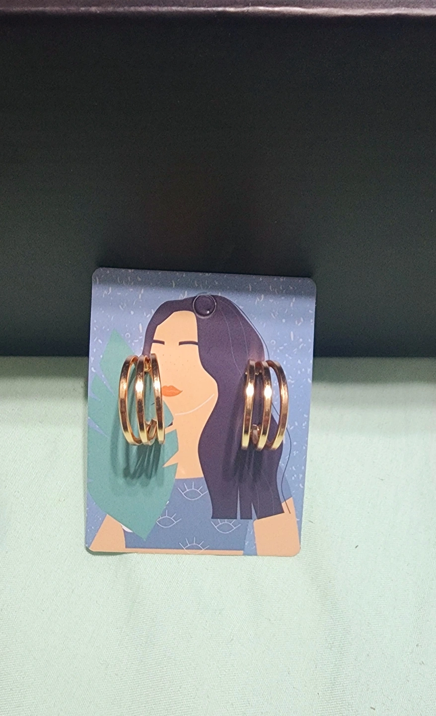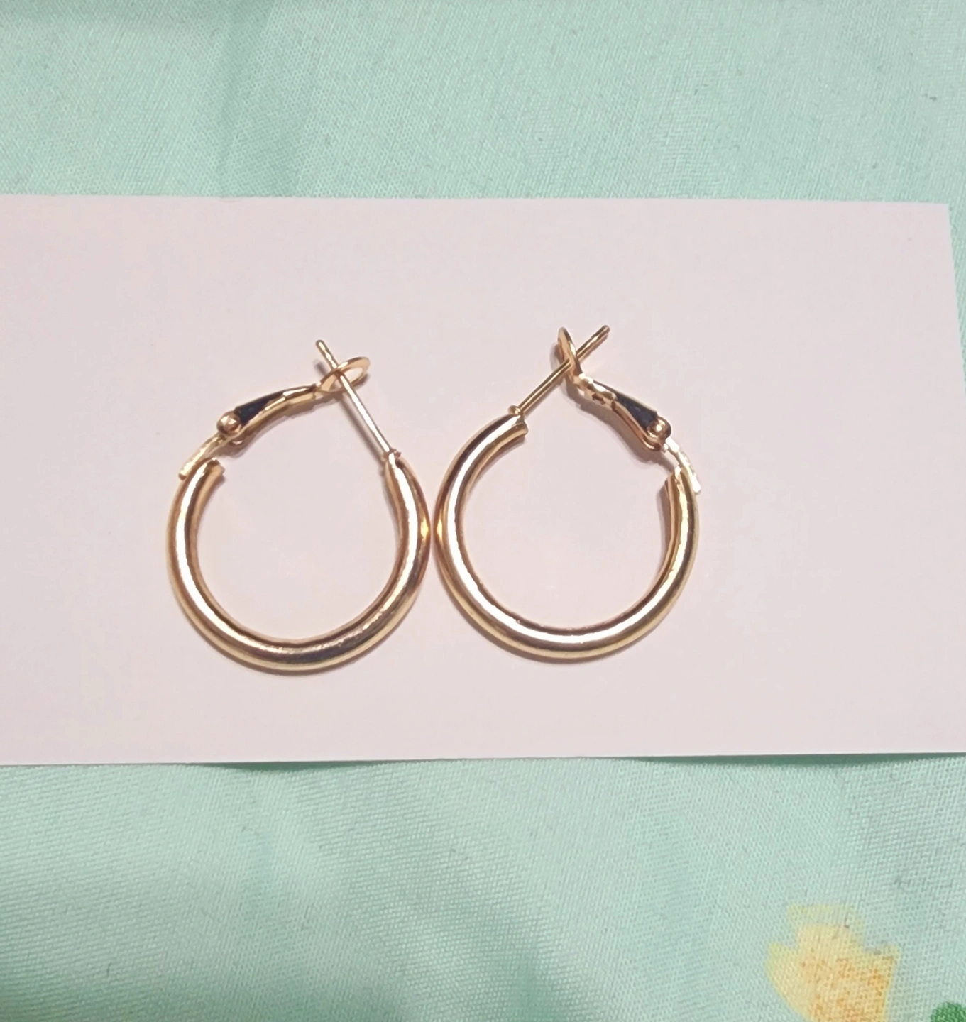15Set of 3 gold hoop earrings. Hinge closure. Lightweight and stylish. 5 for 10$