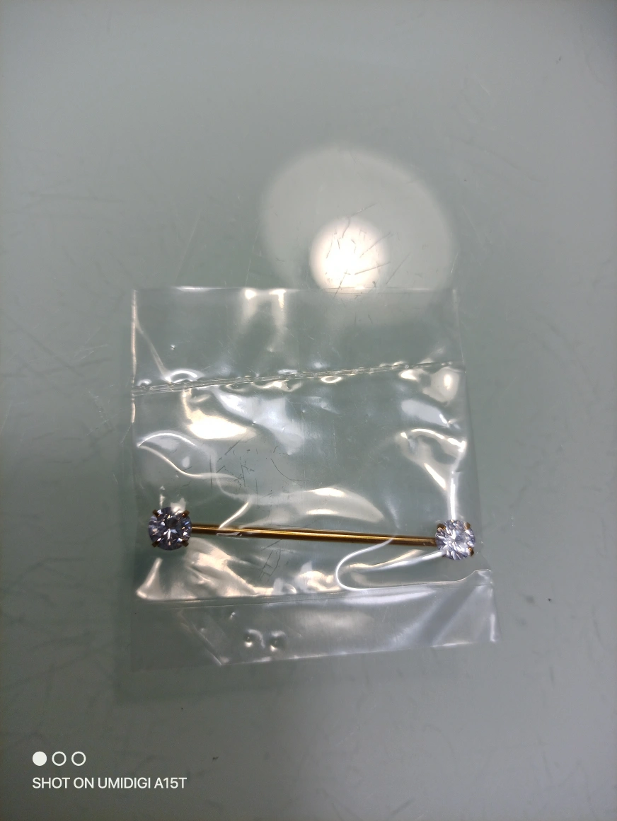 Gold Industrial 38 mm Barbell Piercing with clear gems